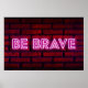 Soyez courageux inspiration citation effet néon texte sur vieux mur de brique. brave, mot, ambition, anxiété, attitude, noir, bloc, bravoure, briques, brillant, défi, club, coloré, béton, confiance, courage, sombre, décoration, déterminé, vintage, rétro, illustration