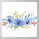 Affiche Soyez humble et des fleurs d'aquarelle bleu