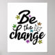 Un dicton positif et inspirant "Be the Change" avec des lettres de style noir gras et manuscrites avec des fleurs rétro et papillon sur un arrière - plan neutre que vous pouvez customiser à la couleur de votre choix.