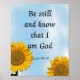 Psaume 46:10. Soyez calme et sachez que je suis Dieu. Une écriture inspirante avec des tournesols brillants.
