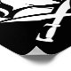 Silhouette of spartan helmet and shoulders with two crossed swords and wreath surrounding helmet.