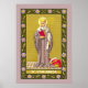 St. Etheldreda (ou Audrey; c. 636-679) est l'un des saints anglais médiévaux les plus populaires en Grande-Bretagne. Elle est née princesse anglienne de l'Est, est devenue reine de Northumbrie et est morte une religieuse. Veut une fois et se marie deux fois pour des raisons d'Etat, néanmoins, elle est restée vierge. Quand son deuxième mari commença à faire pression pour ses droits matrimoniaux, elle demanda l'avocat de St. Wilfred, Archevêque de York, qui lui conseilla de devenir une religieuse et encouragea sa vocation. Elle fit ses voeux à Coldingham en 672. Au cours des années suivantes, elle fonde un grand monastère double pour hommes et femmes à Ely, Cambridgeshire, sur lequel elle préside comme abbess. En un peu plus de quatre siècles, en 1109, le site de son abbaye d'Ely serait constitué cathédrale. Elle meurt d'une douleur à la gorge en 679. + Ici, St. Etheldreda (Audrey) est décrite comme une abbesse, ayant mis de côté sa robe royale avec sa doublure d'hermine, sceptre, et couronne laïque qui apparaissent sur le sol à ses pieds. Elle porte maintenant une couronne rayée poursuivie de fleurs stylisées. Dans sa main droite, elle tient un livre ; à sa gauche, la plus grosse poitrine de son abbesse avec son sudarium ou son ‘chiffon à sueur’ utilisé pour empêcher la décoloration de la tige métallique du personnel par une paume sucrée. D'ordinaire, elle tient une maquette de la cathédrale d'Ely et une verge en herbe ou un lis de pureté. + Fête : 23 juin + Crédit d'image (P 003) : Image antique de S[t].Etheldreda.A[bess].V[irgin]. d'une empreinte dévotionnelle de la fin du 19ème siècle en chromoxylographie, publiée à l'origine par Friedrich Pustet, Regensburg, New York, et Cincinnati. De la collection privée de l'architecte de l'éphémère religieux.