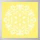 This white mandala sits on a calm yellow background. Les colors are happy and peaceful. Part of the Erghenn Mandala Collection.