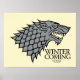 Jeu de Trones | Sigil for House Stark avec une tête de loup de rebut et la devise : "L'hiver arrive".