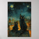Affiche Starry Night Cats : Cosmic City Rooftop Art