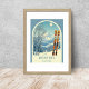 Poster d'une merveilleuse station de ski vacances dans les belles montagnes de Winter Park Colorado! Ce petit poster présente une arche avec un paysage de montagne bleu-gris et des planches de ski rétro dans un motif tribal orange au premier plan. Le reste est dans un beau ton bleu clair avec l'emplacement en lettres dans une police moderne. Le design est une belle combinaison rétro et moderne, et j'espère que vous en apprécierez !