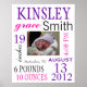 Un grand poster pour raccrocher à la crèche. Envoyez-moi un email avec le bouton contact du vendeur, avec les informations et les couleurs que vous voulez et je vous le ferai pour l'achat. S'il vous plaît ne pas acheter jusqu'à ce que je vous ai envoyé le lien avec vos informations sur vos bébés. Ce sera une vue directe et non publique. Téléchargez la photo de naissance de votre bébé.
