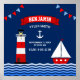 Affiche d'annonce de naissance pour chambre de bébé avec une typographie moderne et des éléments nautiques mignons sur un fond bleu marine. Ajoutez tous vos détails charmants sur ce modèle facile à utiliser pour créer votre propre affiche de statistiques de naissance unique.