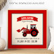 Affiche d'annonce de naissance pour chambre de bébé avec typographie moderne et tracteur rouge mignon. Ajoutez tous vos détails charmants sur ce modèle facile à utiliser pour créer votre propre affiche de statistiques de naissance unique.