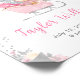 Cette affiche mignonne et amusante présente un ours adorable dans un traîneau rose entouré de neige, de montagnes et de pins. De belles compositions de fleurs en faux strass et des confettis argentés ajoutent une touche festive. Le texte combine une écriture manuscrite et des polices sans serif pour un look élégant et moderne. Il peut être personnalisé avec les statistiques de naissance de votre bébé, telles que le nom, la taille, la date et l'heure de naissance, ou si vous souhaitez l'offrir en cadeau de baby shower, vous pouvez modifier et supprimer le texte.