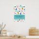 Drôle, petit motif de chien coloré. Poster mignon personnalisé avec le nom et les statistiques de naissance de votre petit.
