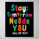 Affiche Stay Tomorrow Needs You 988 Suicide Prevention Awa