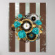 Affiche Steampunk Clock and Turquoise Roses on Striped