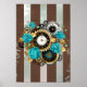 Affiche Steampunk Clock and Turquoise Roses on Striped