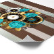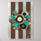Affiche Steampunk Clock and Turquoise Roses on Striped