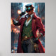 Portrait of a man with impeccable style, decorated with golden chains and steampunk accessories. He represents the perfect balance of power and style in the Steampunk Elegance collection. An essential piece to add originality and mystery to any space