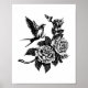 Affiche Style tatouage d'oiseaux et de rose