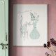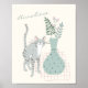 Cet élégant mur d'art illustre joliment un chat gris posé à côté d'un vase vert turquoise rempli de fleurs et de plantes. Personnalisez-le avec votre nom en typographie manuscrite. Grand cadeau pour les amoureux de les chats.
