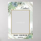 Cadre de selfie pour photo de baby shower avec eucalyptus doré et plantes grasses,