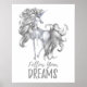 Affiche Suivez vos rêves - Licorne argent et blanc