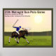 Un joueur de polo chevauchant une orignal (Alces alces), maillot élevé pour frapper. Le soleil se couche au-dessus de la forêt de conifères environnante. Le texte, "25 Midnight Sun Polo Game", "Sponsorisé par le North Star Polo Club", "Dimanche au Fairbanks Polo Grounds" et "Débute à minuit Mosquitos et les moins de huit ans sont gratuits" apparaît également. Chaque année, l'équipe de base-ball des Goldpanners de Fairbanks, en Alaska, joue au Midnight Sun Baseball Game. Le jeu commence à minuit sur le solstice d'été, éclairé uniquement par le soleil. Fairbanks se trouve à seulement 260 miles (260 km) au sud du cercle arctique, le soleil commence tout juste à se coucher au nord alors que le gibier est en route et, à sa conclusion, environ trois heures plus tard, le soleil commence à se lever à nouveau - également dans le nord. Le baseball n'est pas le seul sport qui puisse être pratiqué sur le solstice. Et l'idée de conduire un orignal n'est pas nouvelle. En Europe du Nord et en Asie, on a utilisé des orignaux pour transporter des cavaliers et des charges sur des terrains inhospitaliers. En tant que monture, l'orignal n'a pas d'égal à traverser des tourbières et des chutes d'eau, glissant à travers des épais, l'escalade sur des rochers et nageant rapidement à travers de larges rivières dangereuses. Dans les forêts de conifères denses et les tourbières qui couvrent une grande partie de l'Europe du Nord et de l'Asie, un cavalier à cheval ne peut pas dépasser un cavalier sur une orignal-comme l'a découvert le général russe Yermak Timofeyich quand il a commencé la conquête de la Sibérie au nom du tsar Ivan le Terrible au XVIe siècle. Pour prendre le dessus sur les coureurs d'orignaux de Sibérie, le général Timofeitsch a interdit l'élevage d'orignaux, tué l'orignal domestiqué et systématiquement chassé les coureurs d'orignaux pour les flanquer, les impaler ou les mutiler publiquement en exemple. Il est probable que l'élevage de l'orignal dans les forêts du nord était juste assez fréquent pour être une nuisance, puisque comme nous le savons maintenant, l'orignal - pour tous leurs avantages en tant que bêtes du fardeau - est difficile à garder en captivité. Si l'orignal avait été formé à des postes communs et faciles, les Cosaques difficiles et aventureux auraient certainement changé de montures et poursuivi les cavaliers sur un pied d'égalité. En Europe, l'orignal servait également à tirer les traîneaux sur de grandes distances à travers les déchets congelés. L'un des inconvénients de cette façon d'utiliser l'orignal est que les chevaux sans connaissance de l'orignal timide et deviennent incontrôlables lorsqu'ils sont confrontés à ces créatures étranges. Au XVIIe siècle, le conseil municipal de la ville estonienne de Dorpat (Tartu) a interdit l'orignal domestique dans ses rues. On ne peut qu'imaginer ce que les chevaux ravageurs hors de contrôle, hachés à un autocar ou à un wagon, pourraient se déchaîner dans les ruelles de la ville après être soudainement confrontés à un orignal tirant innocemment un traîneau dans la ville. Le roi Karl XI de Suède envisageait de monter un régiment de cavalerie sur l'orignal, probablement pour profiter de la terreur qu'ils frapperaient dans le coeur des chevaux ennemis. Il n'y aurait pas de canon ni de feu de mousquet, ni de lances ni de sabres pour disperser la charge de cavalerie ennemie. La simple apparition d'orignaux sur le champ de bataille mettrait la cavalerie de l'ennemi en vol impitoyable. Hélas, le grand plan du roi n'a abouti à rien, et les expériences de domestication de l'orignal au cours de ce siècle en font une raison évidente. L'orignal ne pourrait jamais prospérer à mesure que la cavalerie montait en raison de sa vulnérabilité catastrophique aux maladies du bétail et des grandes difficultés qu'il éprouvait à nourrir correctement l'orignal. Dès 1869, le zoologiste et explorateur russe Alexander von Middendorff écrivait au gouvernement du tsar : "Même l'Europe civilisée de nos jours n'a pas réussi à domestiquer l'orignal, l'animal qui peut sans doute être d'une grande utilité. Notre gouvernement devrait déployer tous les efforts possibles pour domestiquer cet animal. C'est faisable. La récompense serait grande, et la gloire aussi." Après le XVIIe siècle, l'élevage d'orignaux est devenu un art oublié pendant près de quatre cents ans. En Suède, un débat a eu lieu à la fin du 18ème siècle sur la valeur nationale de l'utilisation de l'orignal comme animal domestique. Entre autres choses, l'orignal a été proposé pour être utilisé dans la distribution postale, et on a suggéré de développer une cavalerie montée sur l'orignal. Ces propositions n'ont pas été mises en oeuvre, principalement parce que la chasse intensive à l'orignal l'a presque conduit à l'extinction et à cause de l'agressivité pendant la période de pourrissement. L'idée de la domestication de l'orignal n'a pas eu beaucoup de succès dans la Russie tsariste. Cependant, il réapparut dans l’Union soviétique des années 1930; on suggéra alors que la cavalerie d’orignaux pouvait être utilisée efficacement même dans la neige profonde. En 1934, le Comité de réserve naturelle du gouvernement soviétique ordonna la création de réserves d'orignaux (zapovedniks) et de centres de reproduction d'orignaux. Des travaux expérimentaux, initiés par Petr Alexandrovich Manteufel, ont eu lieu à plusieurs endroits : en Yakutia, à la Serpukhov Experimental Game Farm, et dans la réserve naturelle de Buzuluksy Bor dans la région de l'Orenbourg. Les scientifiques russes se sont attaqués systématiquement à la question de l'élevage d'orignaux - et ont réussi. Ils ont découvert que l'orignal pouvait être entraîné à donner du lait, à transporter des charges ou des cavaliers, à tirer des traîneaux et des billes, à aller au pâturage et à reto