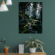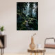 Golden sunlight pours through towering evergreen canopies, illuminating a winding stone path blanketed in soft moss and scattered rocks. Mist drifts gently among ferns and tree trunks, diffusing the warm rays into a dreamy, almost sacred glow. The composition radiates profound calm, timeless solitude, gentle renewal, the quiet magic of untouched wilderness, and the call to step deeper into nature’s embrace—perfect for meditation rooms, bedrooms, home offices, therapy spaces, nature-inspired living areas, or as soul-soothing gifts for hikers, mindfulness seekers, forest lovers, or anyone craving peace, grounding, daily inspiration, or reminders of inner stillness.