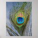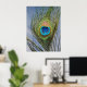 Neat close up picture of a peacock feather poster. The sun reflecting off the feather makes it sparkle.