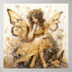 Belle image d'une Fée habillée de jaune assise sur une souche d'arbre dans le jardin. Elle a de belles fleurs dans les cheveux et il y a un papillon Monarque à ses pieds. Cette image a été créée à l'aide de l'IA. #generativecontent