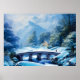 Un paysage de neige avec un vieux pont en pierre au-dessus d'une crique gelée affiche moderne et classique