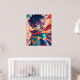 Enfant d'anime en super-héros bleu et rouge avec cape wall art.