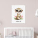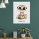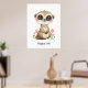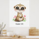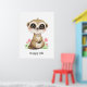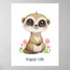 Bébé suricate mignon et fleurs roses affiche heureuse. Le texte peut être personnalisé. Les suricates symbolisent les valeurs familiales, la sensibilisation et la bonne fortune.