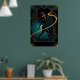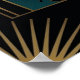 A stunning and surreal Art Deco illustration featuring a woman with a vintage film camera head. With a teal fan-like background and golden light trails, this piece is perfect for film lovers and vintage photography fans.