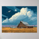 Affiche Surreal Sci-Fi Farm with Rocket Launch Illustratio
