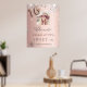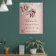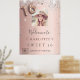 Une affiche de bienvenue pour une fête de 16e anniversaire de Sweet 16, girly et glamour. Un arrière - plan rose à l'aspect faux métallique et à la décoration d'une poussière de parties scintillant en faux argent. Personnalisez et ajoutez une photo, un nom et un Instagram #hashtag. Le numéro 16 est écrit avec une police de style ballon. Retour : aucune conception