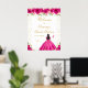 Ce panneau d'accueil élégant et glamour en sweet sixteen présente une belle princesse aux cheveux foncés et à la peau foncée dans une robe de boule rose chaud. Le texte combine écriture manuscrite et polices sans serif modernes pour un look élégant et sophistiqué. Les compositions florales, les papillons et les confettis d'or créent un mélange parfait de rustique et de chic. Graphiques par www.etsy.com/uk/shop/SunflowerDayLove