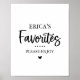 Ajoutez une touche élégante à votre célébration avec ce panneau de sucreries minimaliste moderne "Favoris", parfait pour les tables de desserts de fête d'anniversaire. Doté d'une typographie propre et d'un design neutre, il complète sans effort n'importe quel thème de fête. Ce panneau imprimé de façon professionnelle est une façon simple mais élégante de mettre en valeur vos gâteries préférées, idéale pour toute personne qui planifie des événements chic et mémorables.