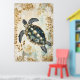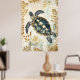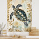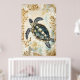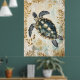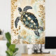 Affiche swimming sea turtle surrounded by floral patterns.