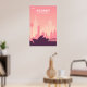 Ajoutez un peu de flair à votre décor grâce à cette affiche de voyage australienne vintage rose représentant une illustration rétro de la ligne d'horizon de Sydney, Australie, y compris l'Opéra !