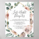 Donnez à vos invités une belle direction avec notre signe d'activité de baby shower de couches tard le soir rose boho, avec l'aquarelle vert eucalyptus et la guirlande rose poussiéreuse et élégante police manuscrite.