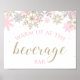 hiver onederland réchauffez-vous à l'enseigne du bar des boissons avec des flocons de neige roses et or.