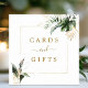 Cette enseigne de cartes et cadeaux mariages présente du feuillage tropical vert aquarelle, de la monstère, des feuilles de palmiers, des feuilles de bananes et des feuilles en faux or avec un cadre carré en faux or. Il est parfait pour un mariage tropical, plage ou destination.