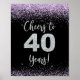 CHEERS TO 40 YEARS signe avec une belle parties scintillant noire, violet et argent confetti design. Parfait pour les fêtes d'anniversaire ou d'anniversaire !