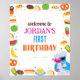 Ce panneau d'anniversaire coloré présente le chariot fourré de la rue Sésame avec Cookie Monster entouré de biscuits et de décorations joyeuses. Le design dynamique capte le charme ludique de Sesame Street, ce qui en fait une pièce centrale idéale pour accueillir les invités à une fête d'anniversaire. Personnalisé pour une touche personnelle, ce panneau ajoute un élément festif et fantaisiste à votre décor de fête.