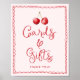 Bienvenue aux invités avec une touche de charme grâce à cette enseigne de cartes et cadeaux de la collection Whimsical Watercolor Cherry Baby shower. Doté de cerises d'aquarelle joyeuses en haut, d'un script rouge vif et d'un arrière - plan rose vif, ce panneau ajoute un accent doux et élégant à votre table cadeau. La bordure dessinée à la main donne un aspect ludique et artisanal. Personnalisez le texte ci-dessous avec votre propre message - "Merci" est affiché par défaut, mais il est entièrement personnalisable pour convenir à votre événement. Idéal pour un baby shower à cerise, un baby shower à thème de fruits ou une douche d'été pour les bébés.