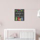 Symbole d'accueil de la fête d'anniversaire des robots personnalisé avec nom enfant ou texte, Illustration des robots en jaune vif, rouge, vert et bleu.