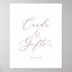 Cette délicate carte rose en or et signe cadeau est parfait pour une douche mariage moderne ou nuptiale. Le design minimaliste romantique présente une belle et élégante typographie rose vif et poussiéreuse rose sur un arrière - plan blanc au look épuré et sobre. La ligne de texte en bas du panneau peut être personnalisée avec la date, les noms de la mariée et du marié, ou un message court comme "Merci". Ce signe peut être utilisé pour un mariage, un événement ou une fête.