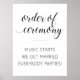 Ce panneau de conseil de l'Ordre de la Cérémonie, drôle mais élégant, présente un style miminaliste noir et blanc avec un mélange d'écriture manuscrite et de polices de caractères simples. Cela peut faire une grande affiche à ajouter à votre cérémonie de mariage. Une partie de la collection Alejandra.
