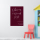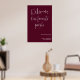 Ce panneau mariage de bienvenue est un complément parfait à votre journée spéciale ! Il présente un élégant style moderne et minimaliste avec de belles calligraphies et des polices sans serif sur un arrière - plan bordeaux. La simplicité de ce design ajoute une touche d'élégance à votre mariage. Il fonctionne bien avec de nombreux thèmes mariages et certainement un grand ajout à votre mariage. Il suffit de customiser les noms et le libellé en quelques étapes simples et de personnaliser la planche en mousse. Il suffit de décorer et montrer à vos invités d'accueillir le couple adorable en tant que jeunes mariés ! Il suffit de customiser les noms, la date et l'emplacement du mariage. Remarque : Le texte du script de typographie de calligraphie de "Bienvenue à nos favoris" et les lignes et autres éléments graphiques ne peuvent pas être modifiés, déplacés ou supprimés. Elles sont réparées.