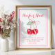 Ajoutez une touche ludique à votre baby shower sur le thème de la cerise grâce à ce panneau de chasse au Pacifique. Doté de cerises douces à l'aquarelle nouées avec un ruban rose, ce panneau imprimable invitation les invités à chercher des pacificateurs cachés dans la douche. L'invité qui trouve le plus gagne un prix ! Une activité ludique et interactive qui s'accorde parfaitement avec votre thème baby shower cerise.