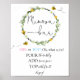 Panneau de Mimosa Bar avec une couronne d'aquarelle de verdure et de fleurs jaunes avec des abeilles en effervescence et les mots bar Mimosa dans un script de calligraphie amusant.